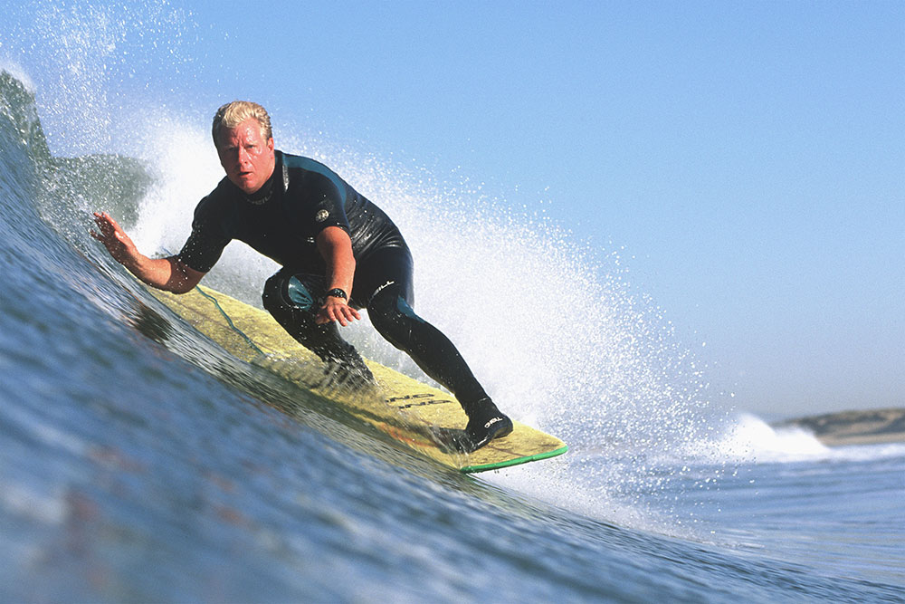 Jack O’Neill was a surfing innovator and businessman who devoted his life to the ocean. A fanatic sailor and hot air balloon pilot, O’Neill was best known as the founder of the original O’Neill surf brand, and launched the creation of the surf industry as we know it today. His passion for the ocean led him to experiment with designing some of the first pieces of insulated surf wear to allow for longer surf sessions in cold waters. After successful experiments with neoprene by Berkeley physicist Hugh Bradner in the early 1950s, O’Neill adopted the material and famously commercialized the first ever full-sized neoprene wetsuit worldwide as well as introducing a nylon jersey lining—the first of its kind—making the material wearable on bare skin. Moving to Santa Cruz in 1959, Jack O’Neill lived near the ocean in Pleasure Point until he passed away from natural causes at the age of 94 in 2017. He was especially proud of the development of the educational program—Sea Odyssey—teaching children about the ocean to encourage its protection and preservation. (Lucille Tepperman)
