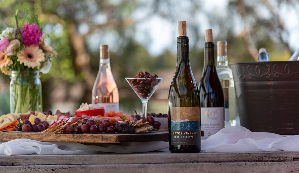 “Our Judge’s Reserve is a spectacle of fruit, herbs and umami that delights from nose to palate to finish,” say the folks at Aptos Vineyard.