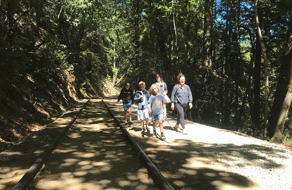 This swimming hole is part of the San Lorenzo River that winds through the park. You can start from the Rincon Parking Lot on Highway 9 and walk about .5 mile to turn right down the steep path down to the pool. Or start from the Ox Trail parking lot further up Highway 9 toward Felton, from that direction and you’ll walk along the tracks for about a mile. Either way, your trip to the Garden of Eden will make you a cross-tie walker.