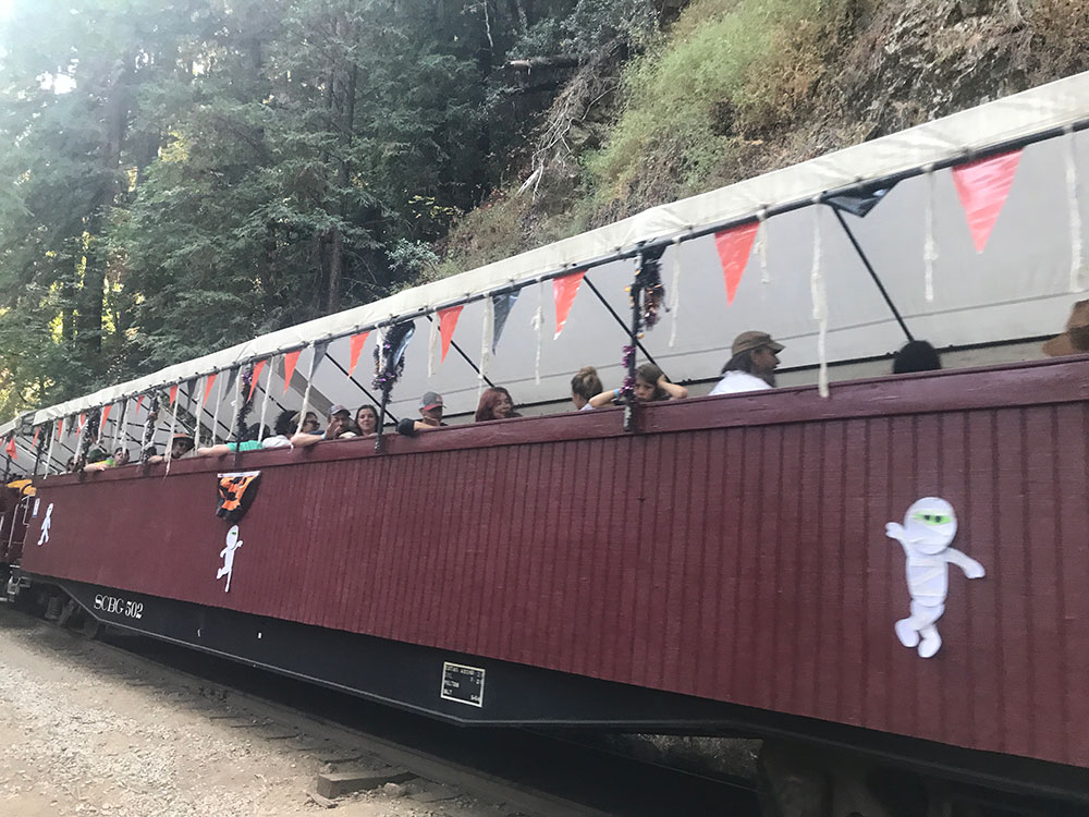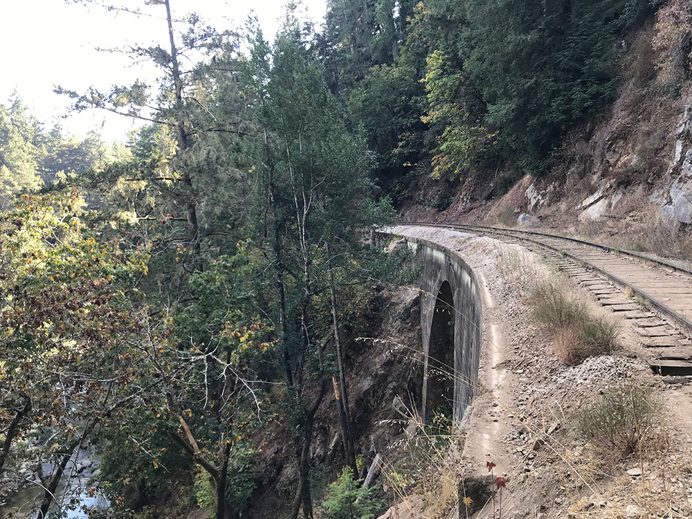 The Big Trees and Pacific Train, run by Roaring Camp Railroads, can run daily during the summer, not so much in the winter. Walking the tracks from the Rincon parking lot, I was on a trestle when the train came by, but it moved slowly, and it was easy to get out of its way.