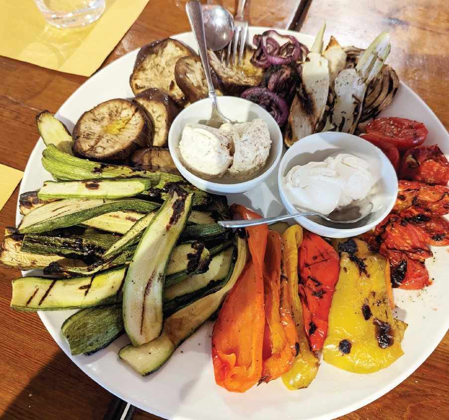 The book is part travelogue, part-time travelogue and family heritage study, part plant-based interpretation of Italian cuisine, part Mediterranean diet direction, all told in her joyful teacher voice that evangelizes for ethical hedonism, realistic that humans are “hardwired to choose pleasure and avoid discomfort.” She writes with forgiveness for you wandering from the path before you even get on it. Her exclamation points, used liberally, feel like affirmation.