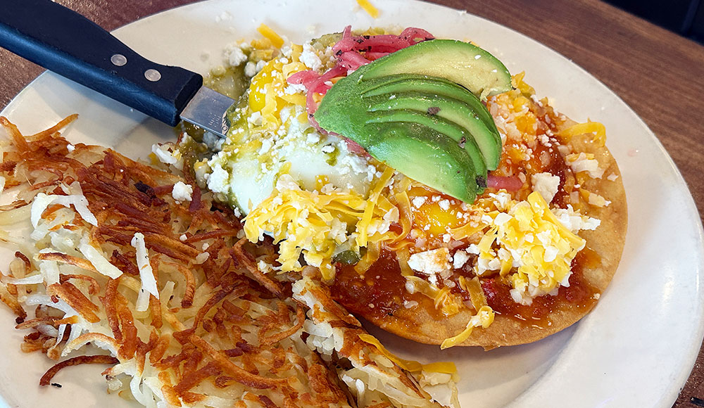 He describes the ambiance as classic meets modern with farm-like feels and a classic American food menu with Mexican influence. Breakfast favorites include chilaquiles, a sort of breakfast nachos with tortilla chips, eggs, queso fresco, pickled onions and red enchilada sauce. They also offer a classic combo breakfast set off with sweet cream pancakes as well as a popular skillet with all the mixed-together breakfast things.