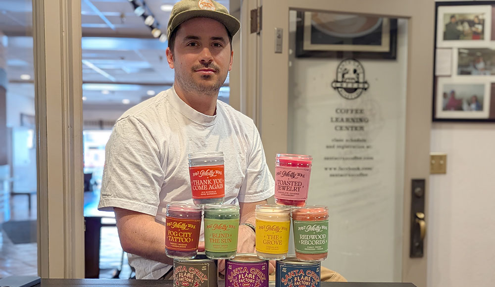 Locals might recognize Denike as one half of an upstart branding and event company, Collective Santa Cruz, which he and business partner Jalen Horne started in 2022. Hot Melty Wax originally began as the Santa Cruz Flame Company for Collective’s Can Party event at the end of 2023. Held at Other Brother Brewery, it was a canned food drive for Second Harvest Food Bank with canned beer specials for patrons.