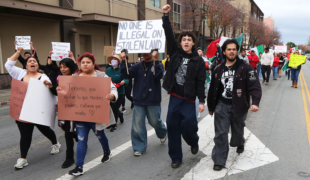 Thousands of people filled the streets in downtown Watsonville Monday afternoon, waving Mexican flags, carrying signs and chanting, all in observance of a Day Without Immigrants, one of numerous protests nationwide against the hardline immigration policies enacted by the new presidential administration.