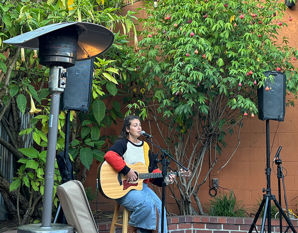 The Ugly Mug offers an open mic for all acts on Monday evenings from 5 to 8pm. Staff move tables aside to make room for rows of chairs; A stage with a microphone and speakers faces the crowd at the Soquel coffeehouse. On this night, more than 20 acts perform, many of them older white men who sing while playing a guitar. A young girl sings Noah Kahan; a man with three different bird-themed hats teaches the crowd about bird mating patterns.