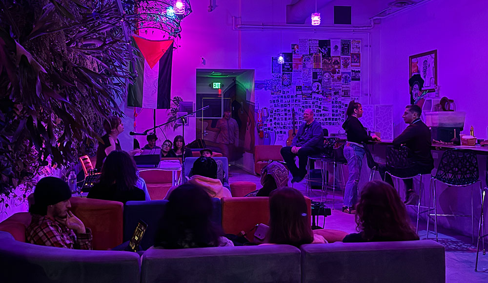 Wednesdays at 7pm, 11th Hour Coffee hosts an open mic in the outside seating area of its Westside location. Hardwood booths, tables and heat lamps are strewn about, along with green vines that crawl up the walls that enclose the space. Performers are mostly young and either sing or read poetry. Host Bryan Callahan closes out the night with a reading of his own poem. He explains that Wednesday nights are popular with UCSC students. 11th Hour does not allow stand-up comedy as they have had problems with offensive performances in the past. Callahan explains that they try to “offer a stage to small local acts.”