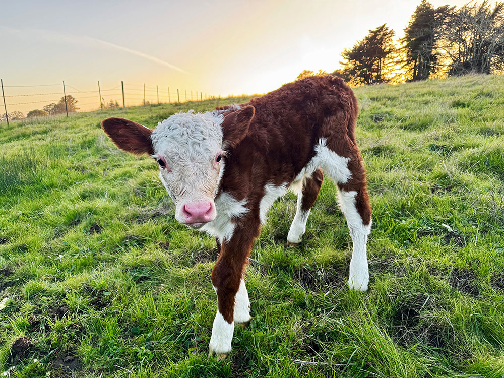 HOOFIN’ IT Newborn calf at Arana Gulch, Valentine’s Day—the newest member of the grassland management and tarplant recovery team. Photograph by Matt Freeman.