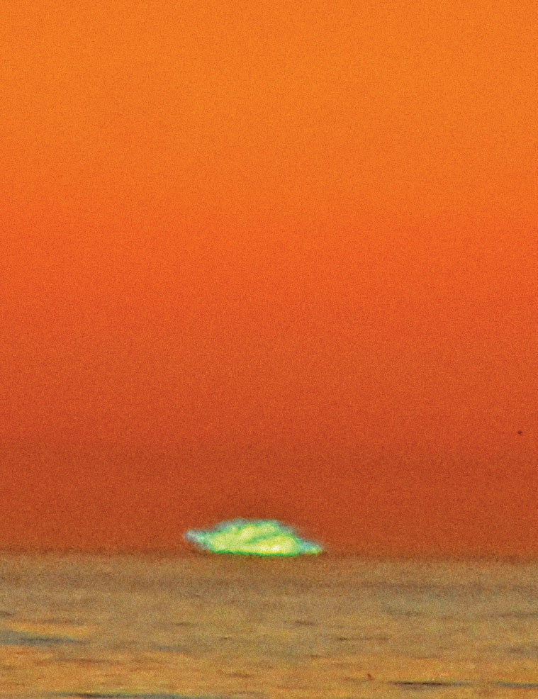 FLASH OF GREEN No, the green flash at sunset and sunrise isn’t a myth. It was captured Jan. 5 on Seacliff Beach. Photograph by Paul Titangos