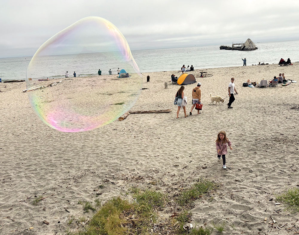 CHASING THE BUBBLE For kids, what could be better than the beach and giant bubbles? Photograph by Eric Olsen