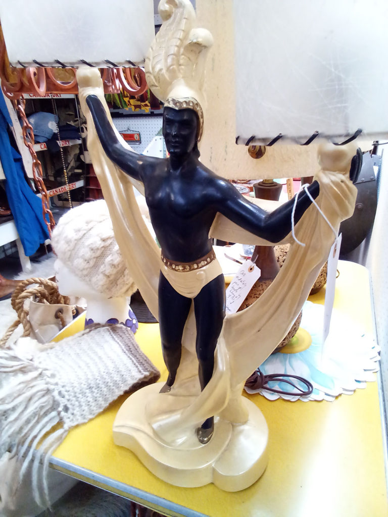 Light fixtures provide endless opportunities for furniture designers to express their eccentric and sometimes loony ideas. Anything can serve as a lamp base, as the infamous Leg Lamp from A Christmas Story proves, and anything is what you’re likely to find among Santa Cruz’s antique collections. Is that a Nubian prince trimmed in gold with outstretched arms to hold a pair of lightbulbs? It’s certain he’ll spark conversation and conjecture if he stands next to your sofa.